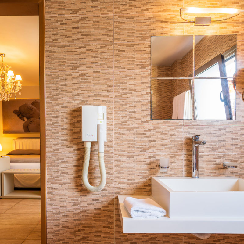 There is either a shower with shower or bathub, direct dial telephone line, 32″ LED TV with satellite, safe box and complementary premium quality bath products by Korres as well as slippers. All rooms include additional make up mirrors, mini-bar fridge and hair dryer. Double glazed windows ensure peace and quietness at all times.
