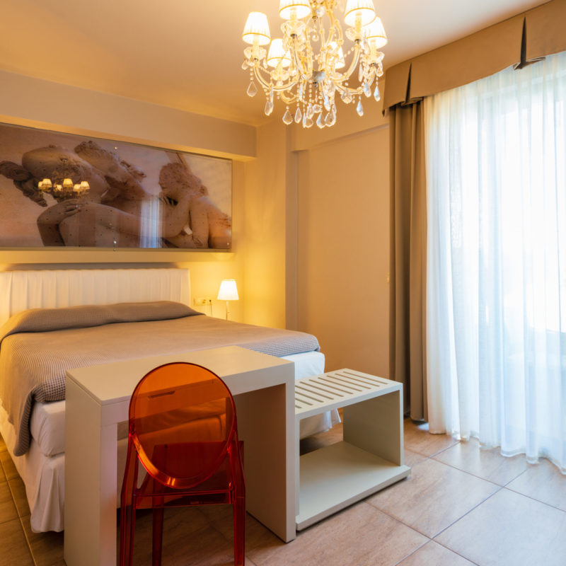 Premium rooms are with 20 sq.m. of space overlooking the swimming pool or the hotel entrance. They have variant contemporary design based on a theme color.
